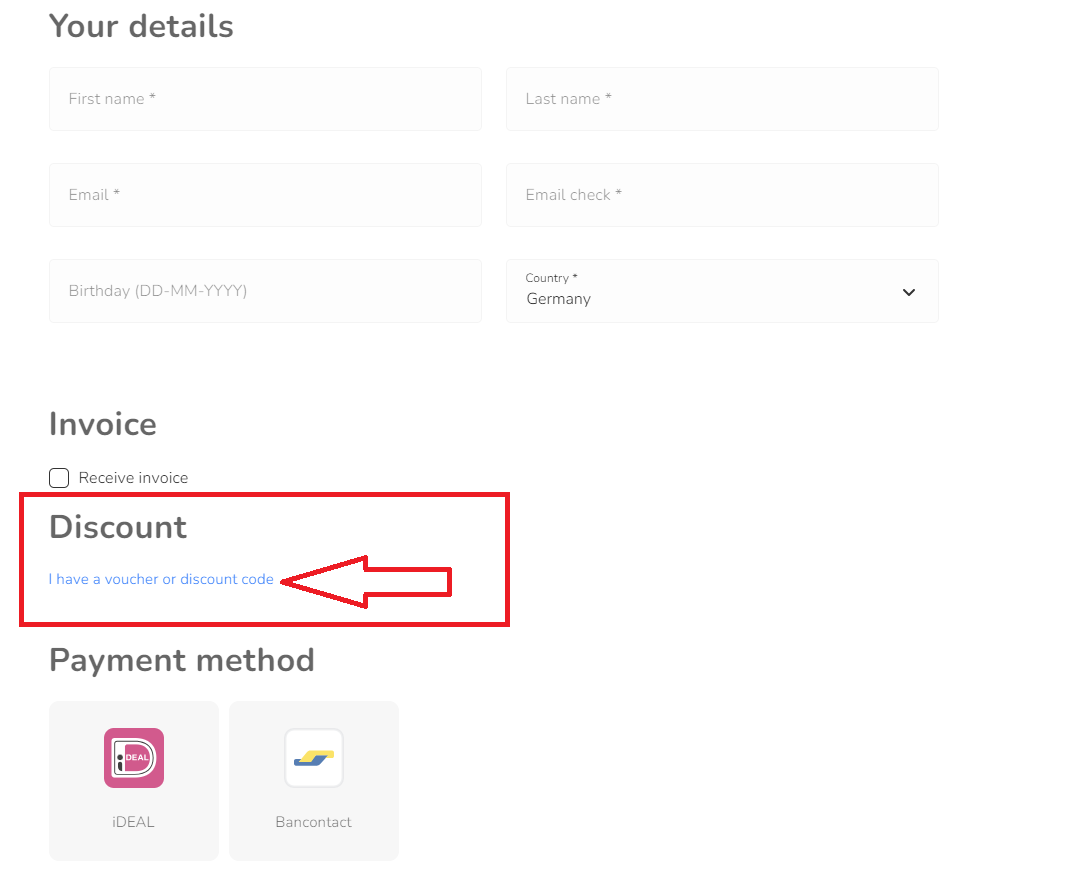 Commencez par choisir le bon billet et suivez les étapes suivantes. Sur l'écran où vous sélectionnez le mode de paiement, vous pouvez entrer le code de réduction. Faites-le avant de finaliser le paiement, car cela ne peut pas être corrigé après que le paiement a été effectué.